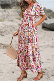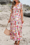 Elevate your style with the Aapparella Floral Maxi Dress! This fashionable dress features a beautiful pink floral design, perfect for spring and summer. With a flattering v-neck and high waist, it's the perfect addition to your wardrobe.