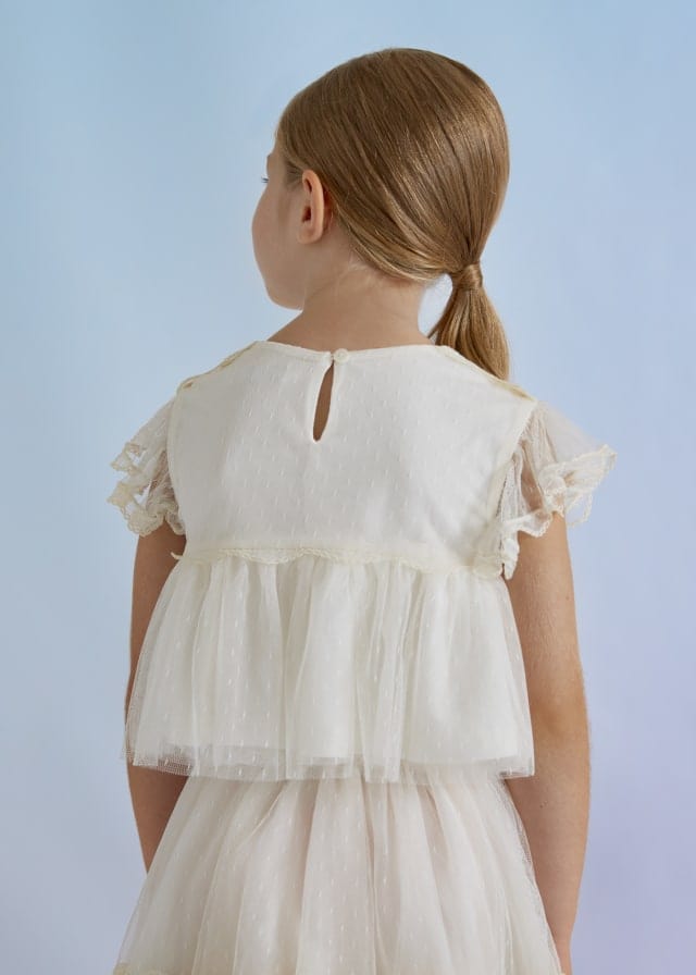 This adorable top pairs well with a pair of jean shorts or a skirt!