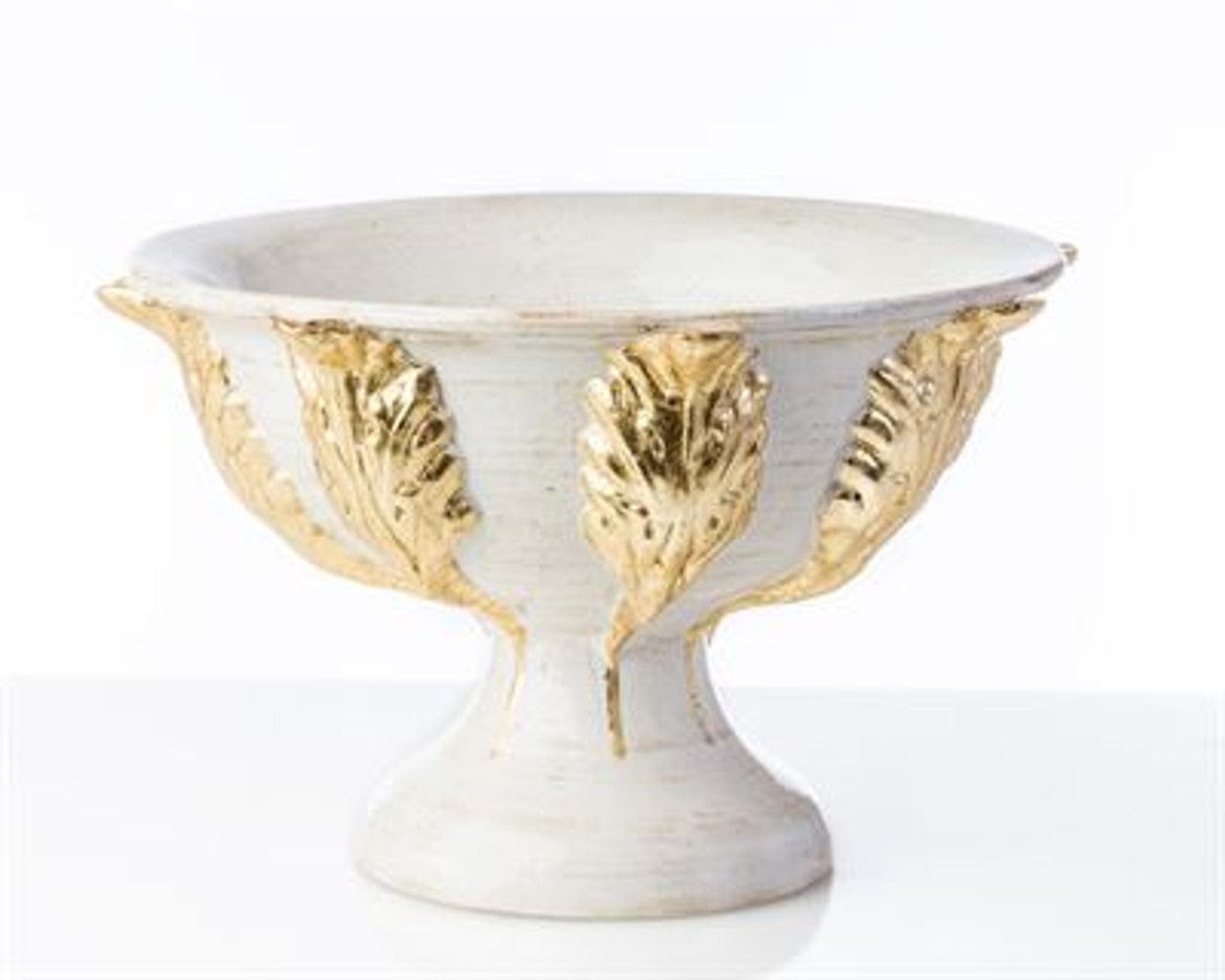 Add some flare to your space with this fabulous compote from Abigails! With gold accents and a white base, this piece will add a little shine to your home.