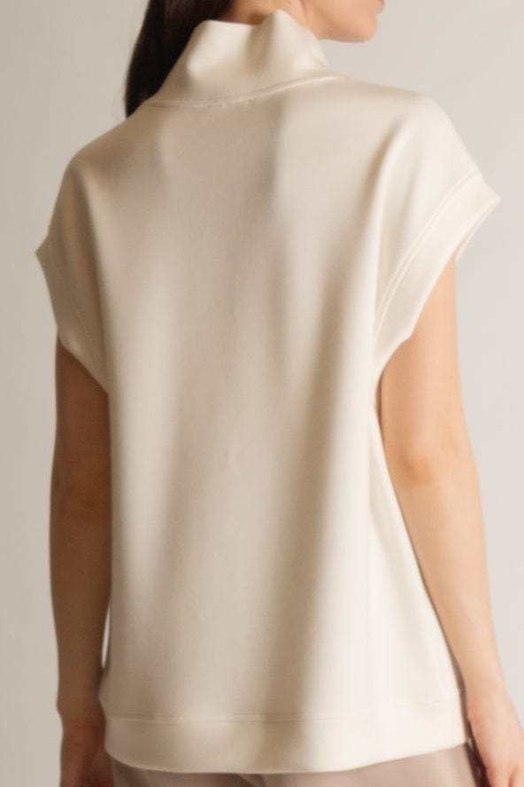 Details: - Scuba modal fabrication - Capped sleeves - Short sleeves - Mock neck. • Care Instructions: Hand wash • Fabric: 48% Modal, 48% Polyester, 4% Spandex