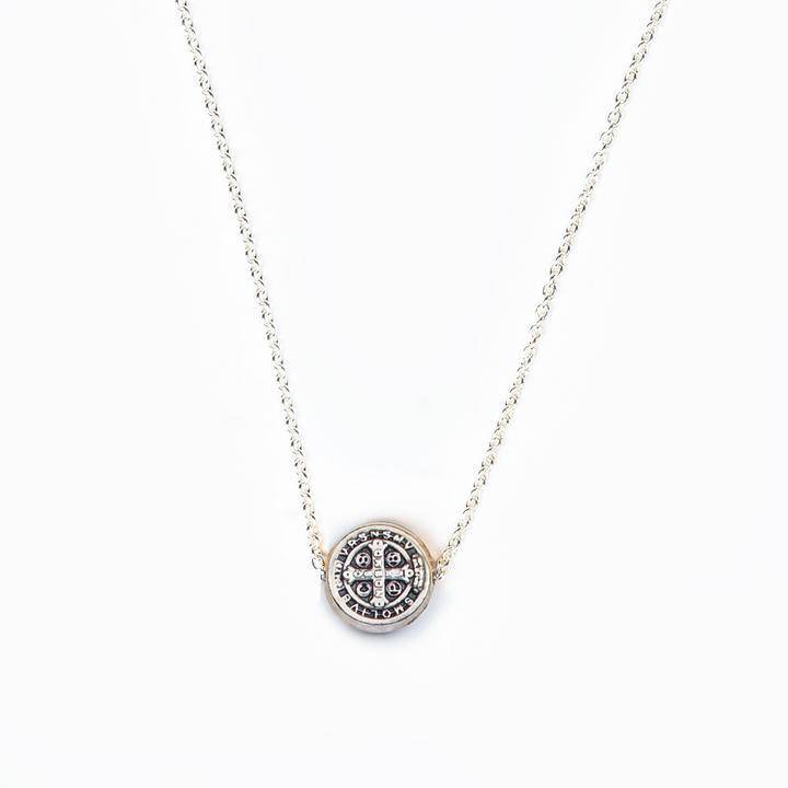 The Benedictine cross is the most powerful symbol of protection. Wear this necklace as a reminder that you are protected by God's great army of Angels and Saints. This Benedictine medal is a prayer for strength in time of temptation for peace among ourselves and among nations and a petition that we may "walk in God's way, with the Gospel as our guide."