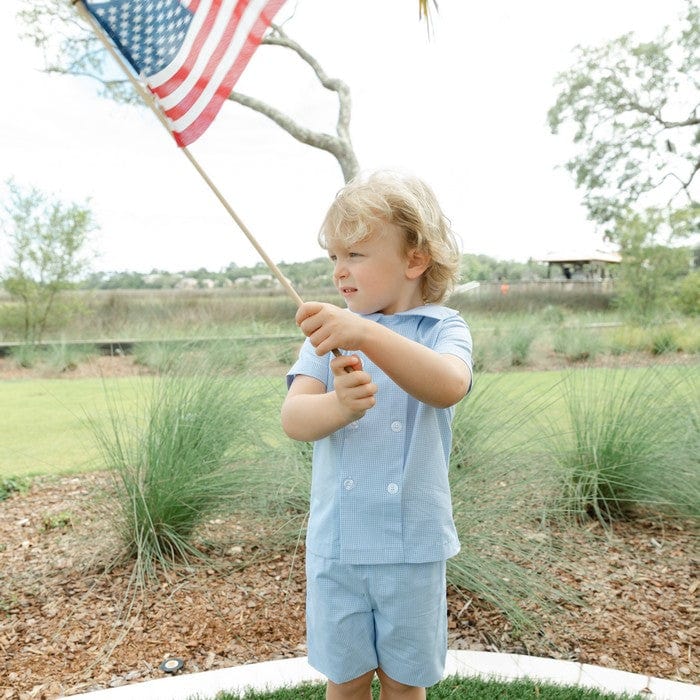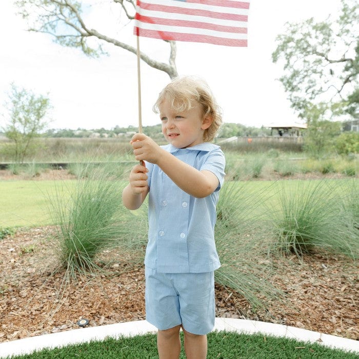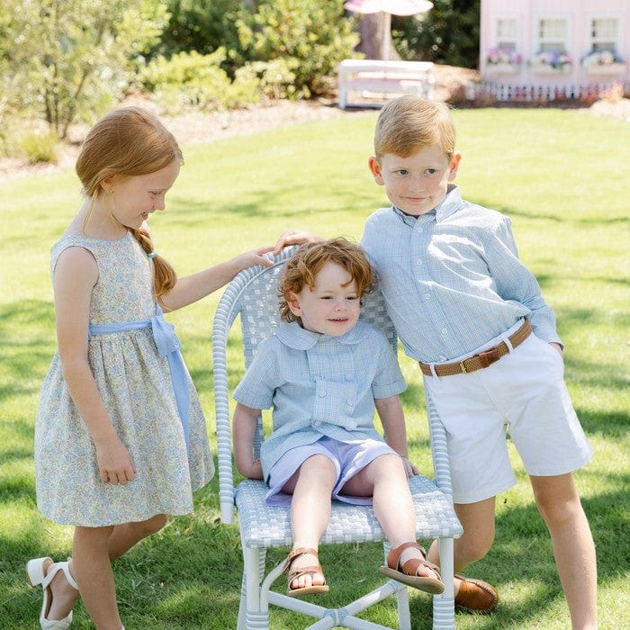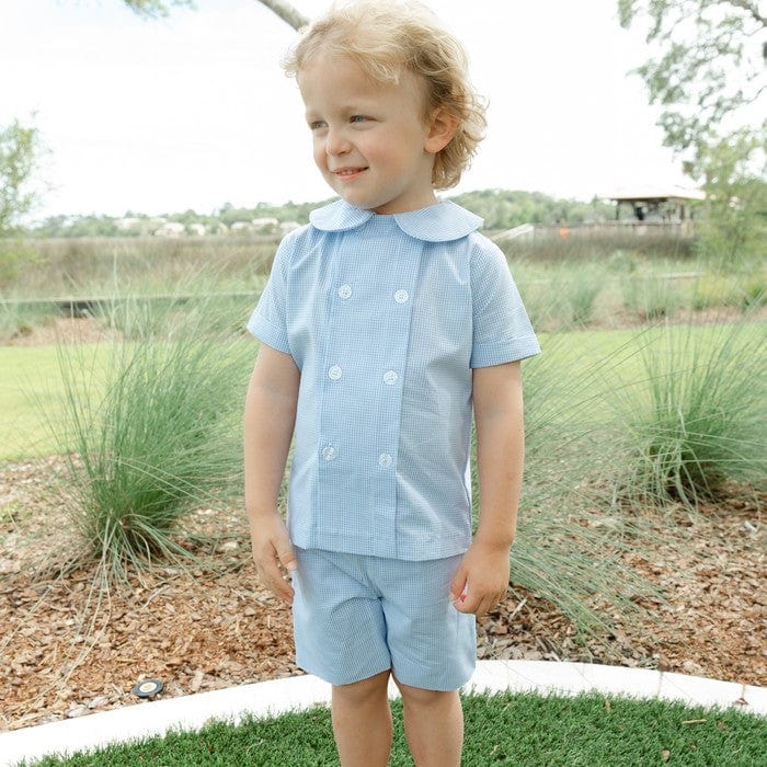 Elevate your little one's style with this Bailey Boys Blue Microcheck Dressy Short Set. Designed for timeless charm, this outfit features a classic microcheck pattern paired with tailored shorts, making it perfect for special occasions or family gatherings.