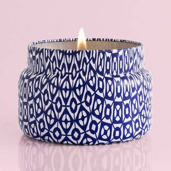 Take your favorite scent with you to create a light and relaxing atmosphere anywhere with the Blue Jean Printed Travel Tin. This travel candle is small and compact, making it easy to carry along for the ride. The blue and white decorative travel tin adds a stylish and luxurious touch to any space.