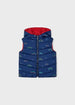 Sleeveless Vest for baby. Hooded collar. Front, central zip fastening. This is a reversible item.