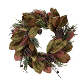 Transform your front door into a luxurious autumn entry way with Creative Co-op's Faux Magnolia & Juniper Wreath. With the look & feel of natural elements, including pinecones, this sophisticated wreath will create an instant fall ready vibe for your home.