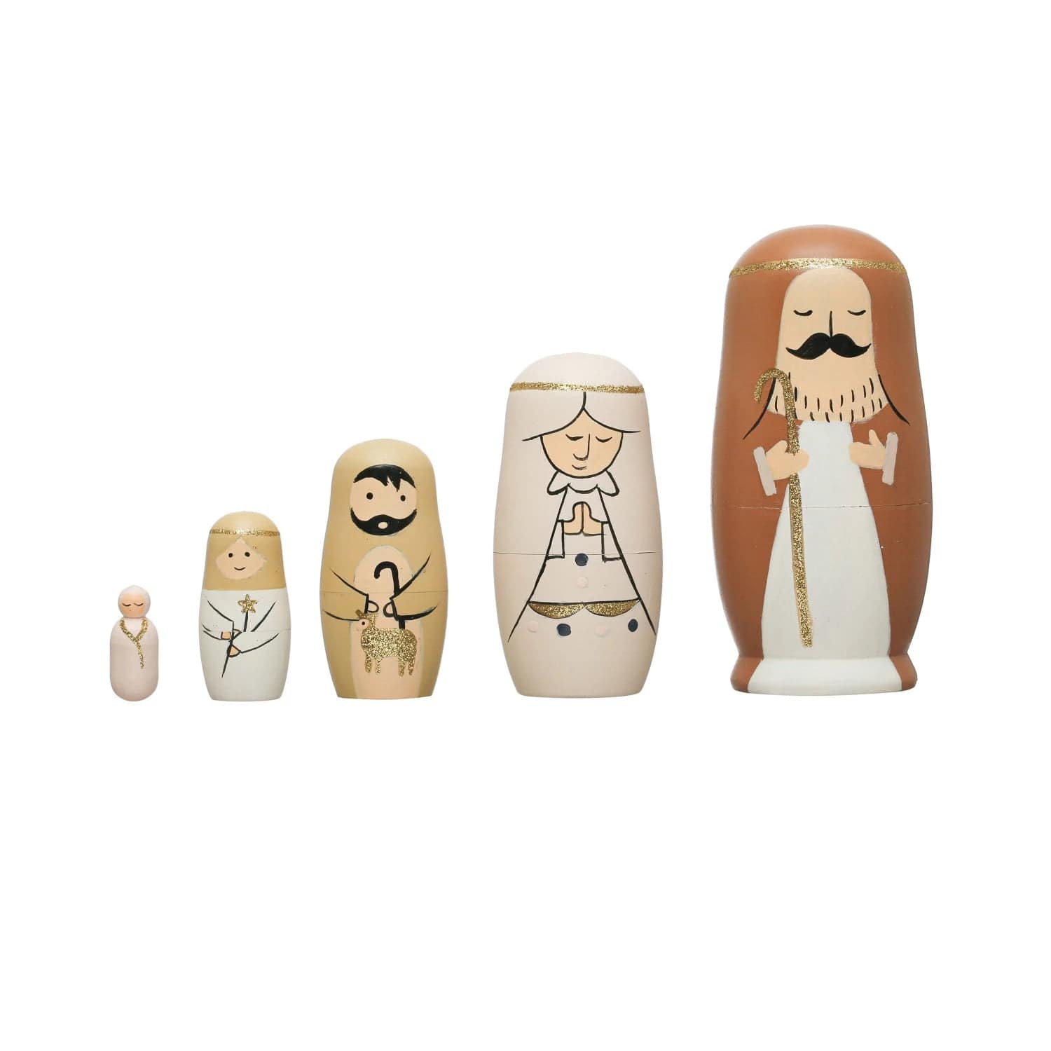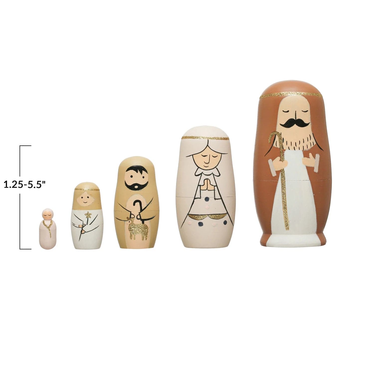 Hand Painted Wood Nativity Nesting Doll, 5PC Set