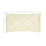 Diamond patterns, polka dots and decorative fringe are features of this elegant off-white rectangle pillow. Right at home in the luxurious home, it can be the perfect accent to the living room or bedroom decor. Off-white will add a bright and open touch to any color scheme.
