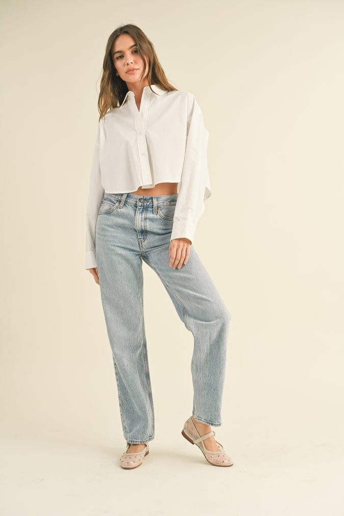 Add some unique charm to your wardrobe with the Miou Muse Cropped Button Down Shirt! Made from 100% cotton, this ladies' white shirt features a stylish cropped design and classic button-down closure. Perfect for any casual or dressy occasion, this shirt is a must-have for any fashion-forward individual.