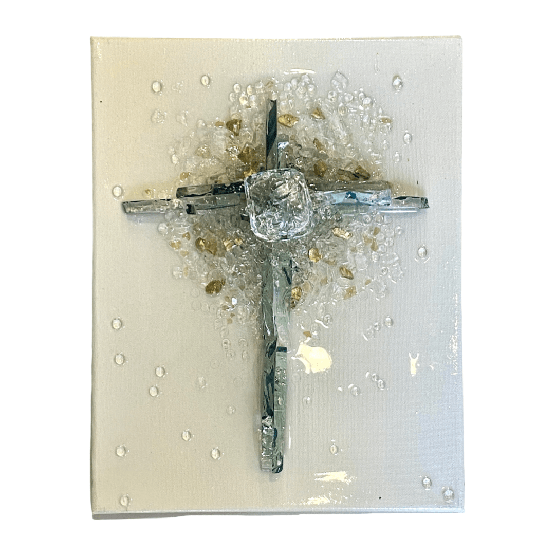 Handcrafted by a local New Orleans artist, this Laurie Kelly Art Studio 5x7 Cross artisan art piece transforms recycled glass into a stunning masterpiece. Each design captures the essence of a beautiful heart with sustainable materials. The vibrant color tones and unique texture make this eco-friendly artwork a perfect addition to any home. Each art piece is unique.