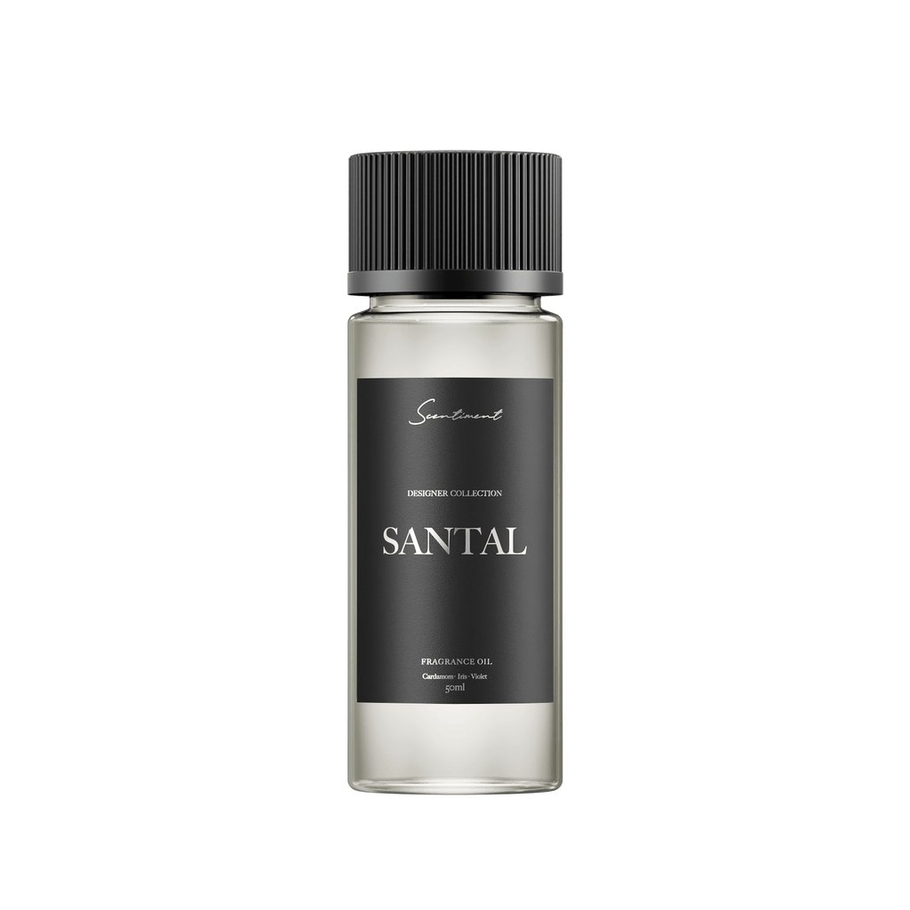 Scentiment Enchanting Eau De Toilette Perfume, Santal, blends fresh cardamom, cucumber, and mint with a floral iris heart. Warm base notes of violet, sandalwood, and cedar wood create a rich, comforting scent inspired by Le Labo’s Santal 33®, perfect for everyday elegance.