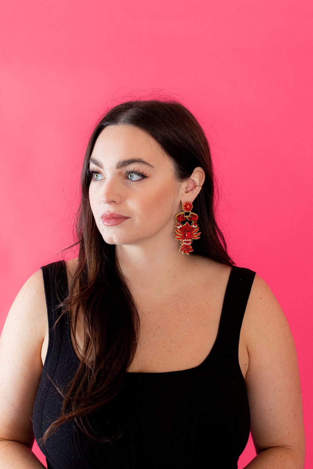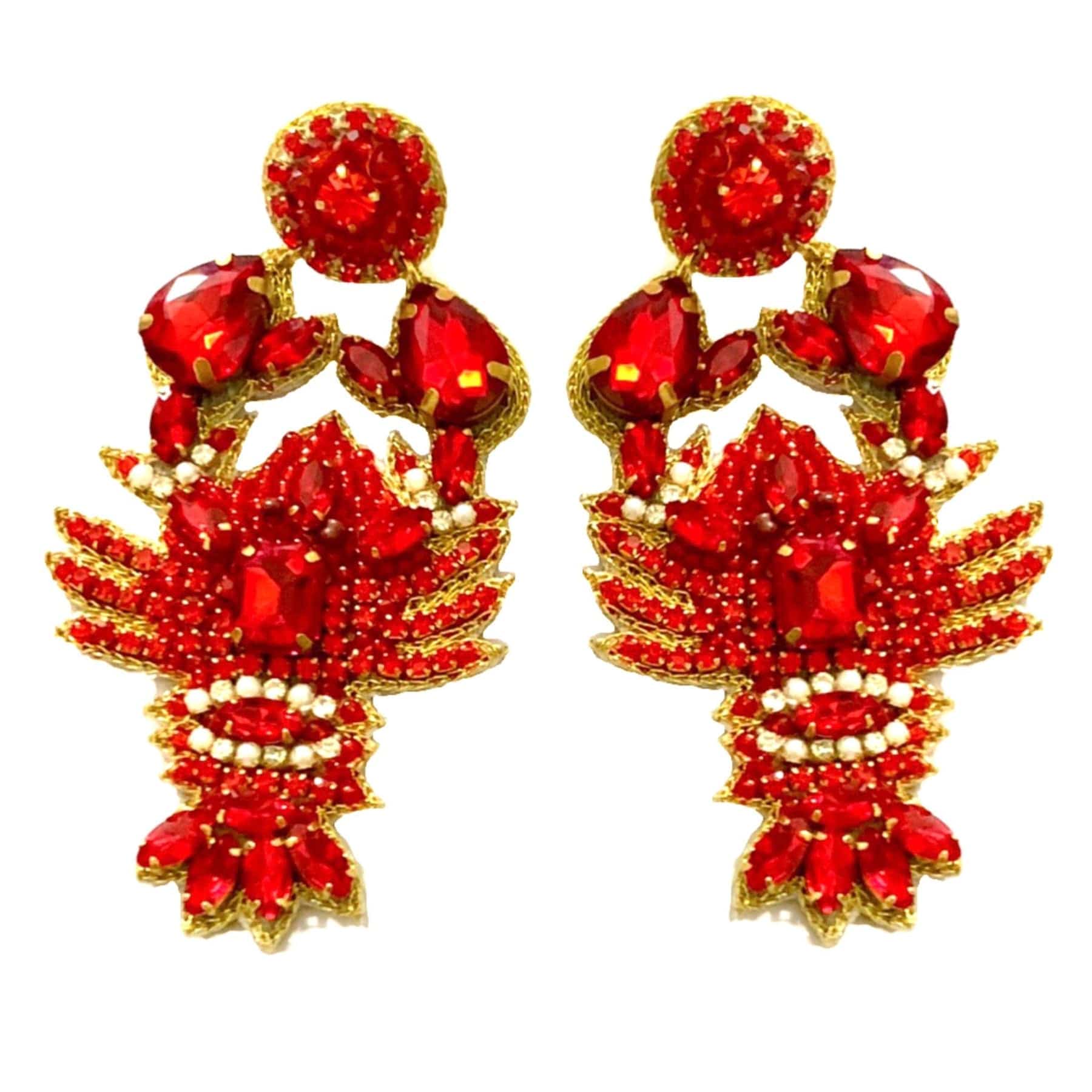 Our rhinestone crawfish earrings are embellished with rhinestones. Perfect to wear to any crawfish boil or festival. Length: 1.5 inches Post Back Lightweight Nickel Free 14k Gold Filled Post