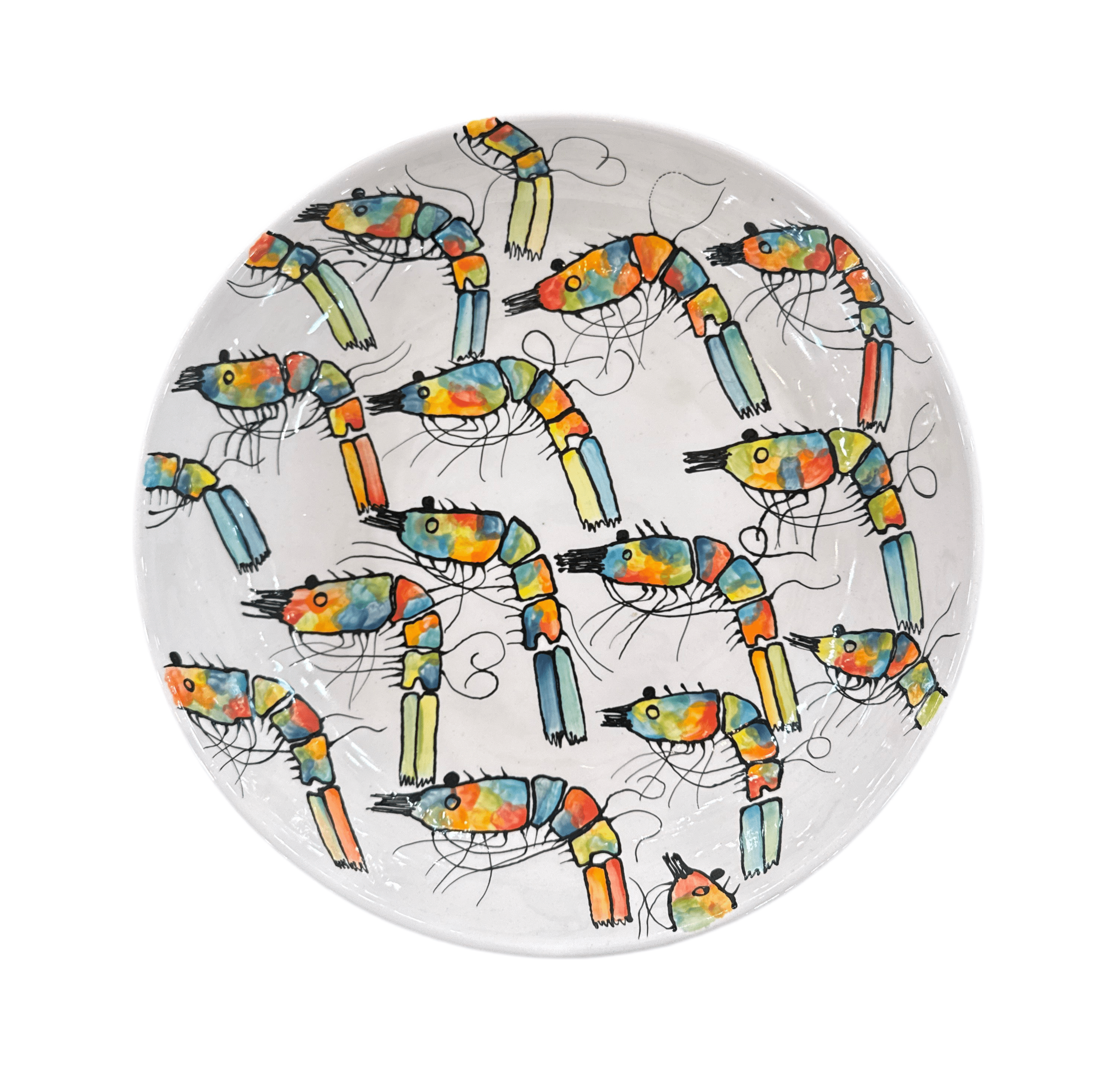 This beautiful 14” large and 3” dip Shrimp bowl is from our Jan Salzer Collection, one of New Orleans’ finest local artists. All of her pieces are one of a kind, and created with care.