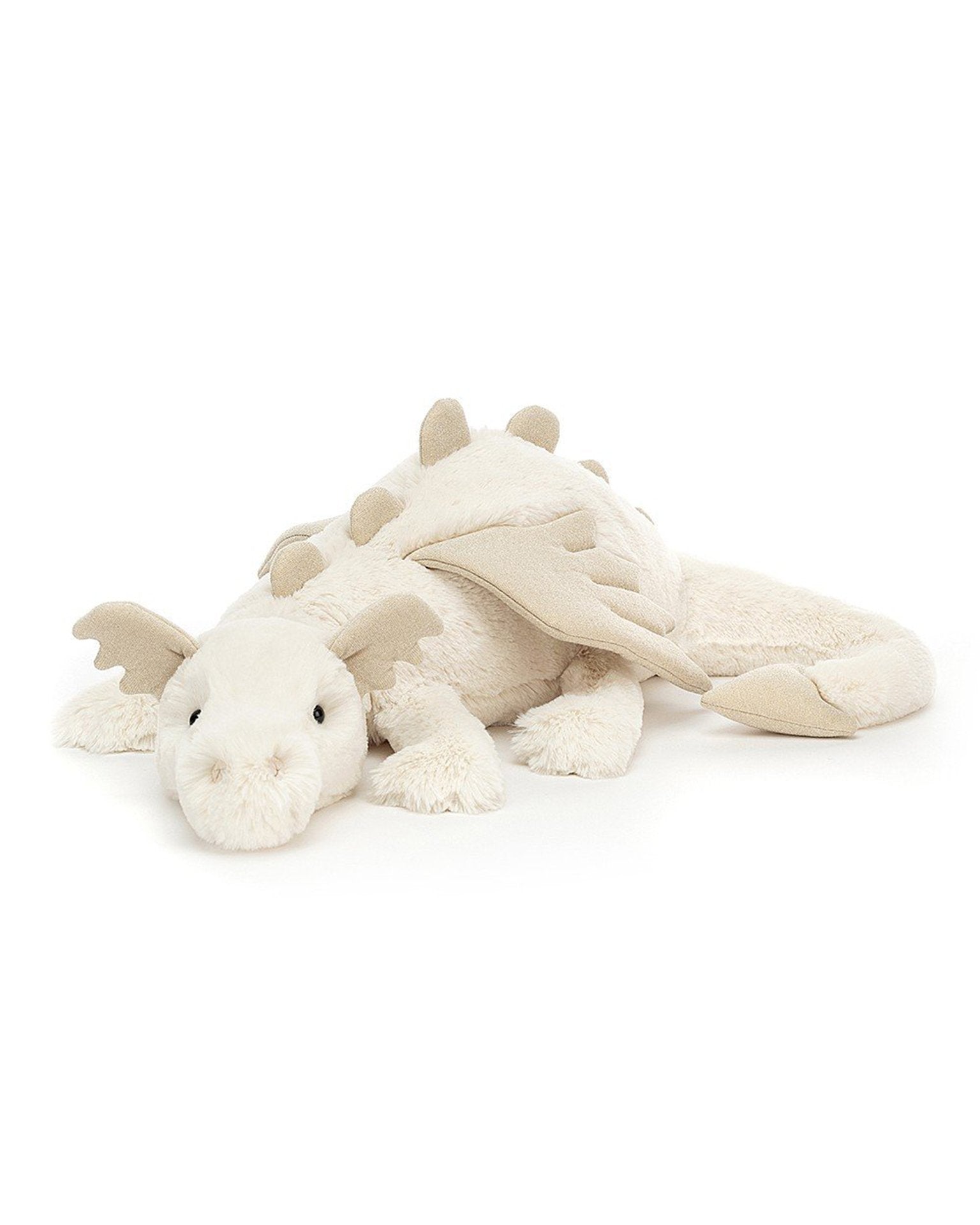 Lounging around like a creamy cloud, it's loveably lazy Snow Dragon! This marshmallow marvel shimmers with magic, from sparkling spines to ears, wings and tail dart! This sumptuous softy loves flapping up a blizzard!