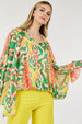 This Lime Mist Frill Collar Print Blouse offers a unique combination of whimsy and fashion. The fun, funky print and wide sleeve make it a great option for both a casual daytime look and dressy evening wear. The stylish design is sure to turn heads.