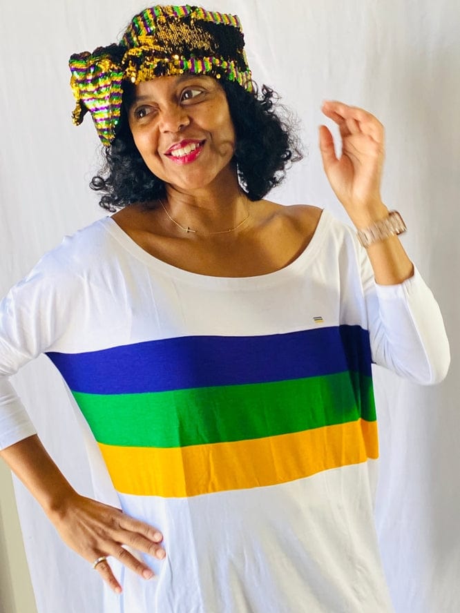 The most comfortable and cutest oversized, off the shoulder top that hits at the perfect length! Slightly longer at the back and extremely flattering this top pairs perfectly with any of our leggings or with skinny jeans! You can mange kids, have all day fun and take part in all the Mardi Gras festivities without restricting movement. Trust us, you’ll want one in every color! Sizes as follows: XXS/XS- fits up to a size 12 S/M- fits 12-22 L/XL- fits 22-34.