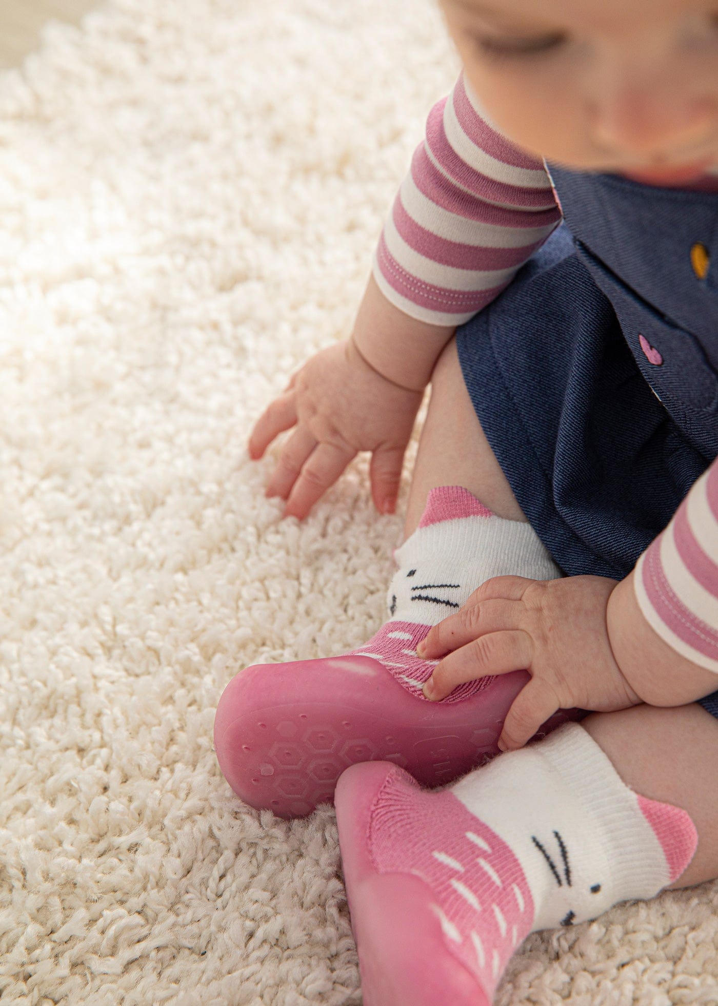 Casual socks with non-slip sole for newborn. Textile outer material.