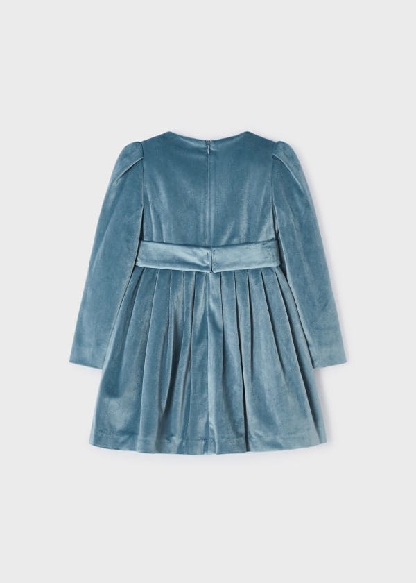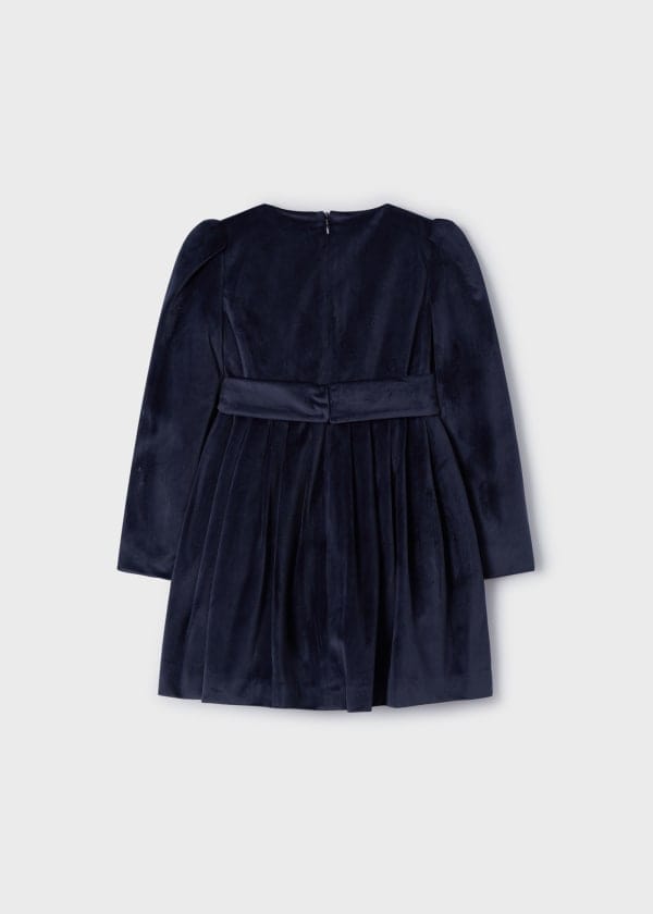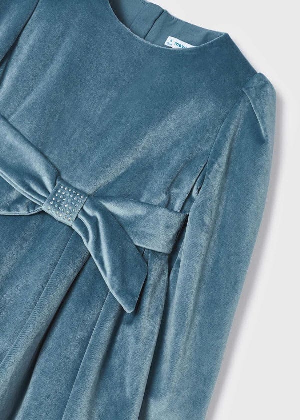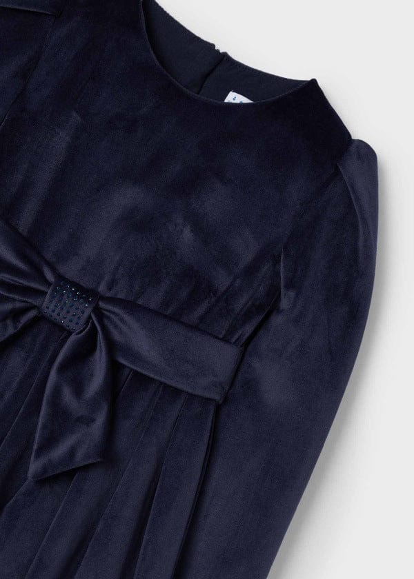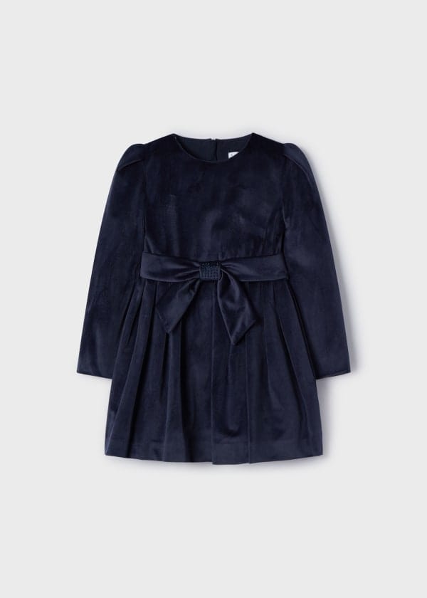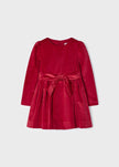 Add a touch of elegance to the holidays with this Mayoral Belted Velvet Dress. Made of 100% polyester and lined with 100% cotton, this girl's long sleeve red velvet dress features a bow front, perfect for special occasions. She'll be sure to make a statement this Christmas season.
