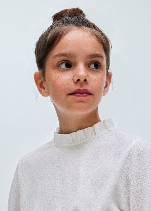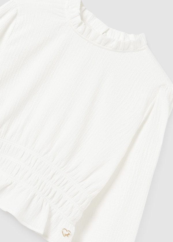 The Mayoral Gathered Blouse is a sophisticated choice for any tween or teenage girl looking for a dressy outfit. Crafted from 97% polyester and 3% elastane, it features long sleeves and an elegant gathered waistline. Enjoy the quality of this timeless blouse.