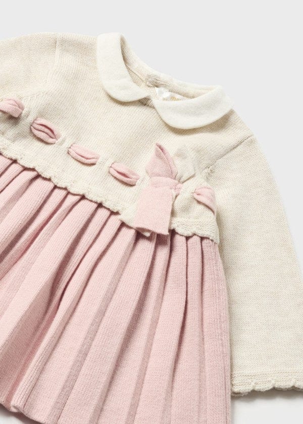 Introducing the Mayoral Knit dress for girls: a 100% Cotton dress with a long sleeve top and a pleated skirt bottom. Soft and fashionable, this dress is sure to be a go-to favorite. Perfect for any occasion!