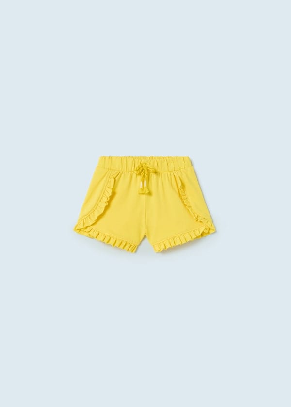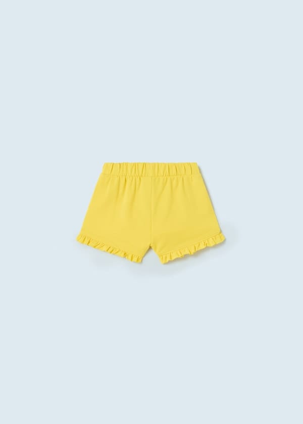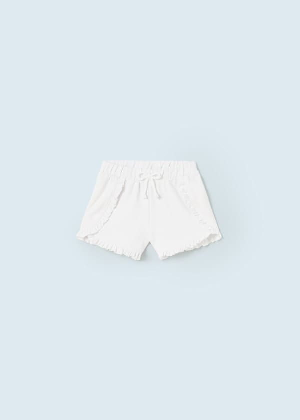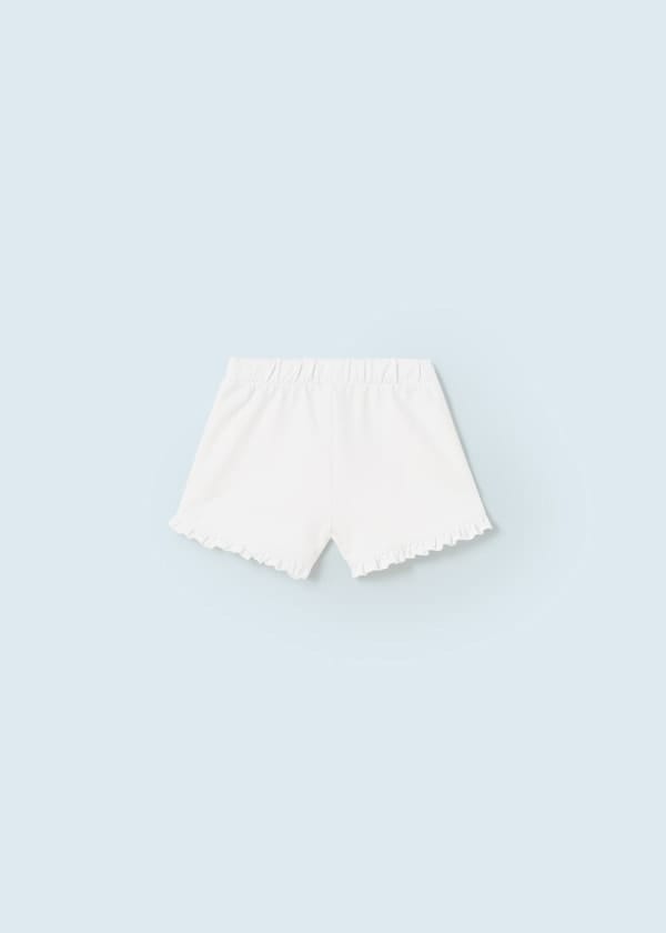 ECOFRIENDS garment, contains sustainable cotton Shorts for baby. Elasticated waistband for a better fit. Decorative elements: bow applique, decorative ruffles.