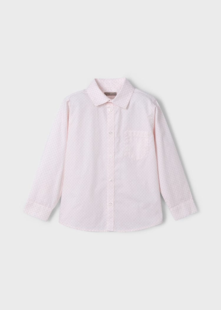Long-sleeve shirt for boys. Classic collar. Button closure at the front. 100% cotton fabric. Functional front pocket. Printed design.