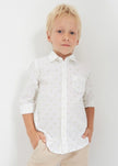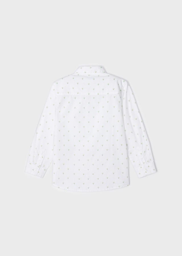 ECOFRIENDS garment 100% sustainable cotton. Long sleeved Shirt for boy. Shirt collar. Button fastenings down the front. Functional front pocket. Patterned design.