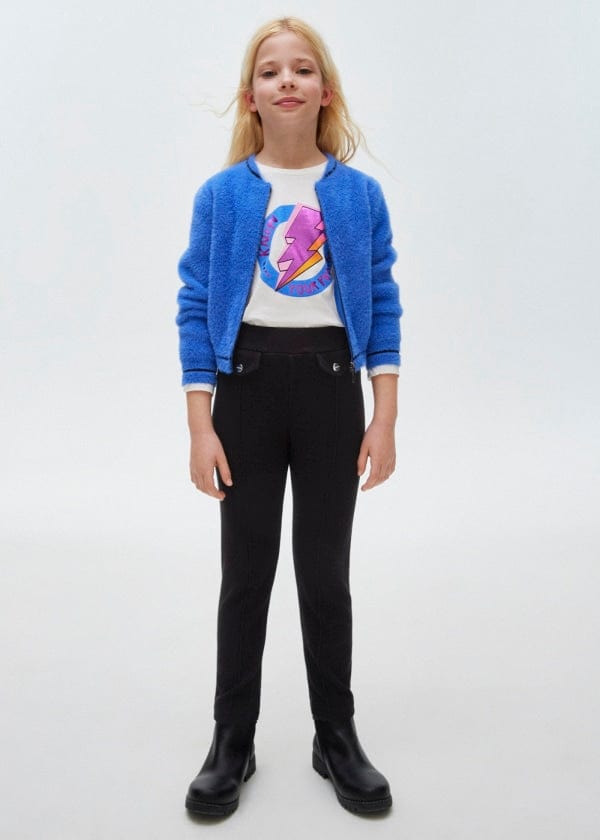 These Mayoral ottoman leggings are ideal for the stylish tween girl. Crafted from a blend of 71% viscose, 24% polyester, and 5% elastane, these leggings provide a lightweight, non-irritating fit and excellent durability. An elastic waistband keeps them snug and comfortable throughout the day. A must-have item for your tween's wardrobe.
