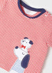 Puppy 2 Piece Short Set Short sleeved T-shirt with contrasting fabrics for newborn boy. Contrasting color round neckline. Single snap-button fastening. Made from knitted fabric. Decorative elements: embroidery Functional front pockets.