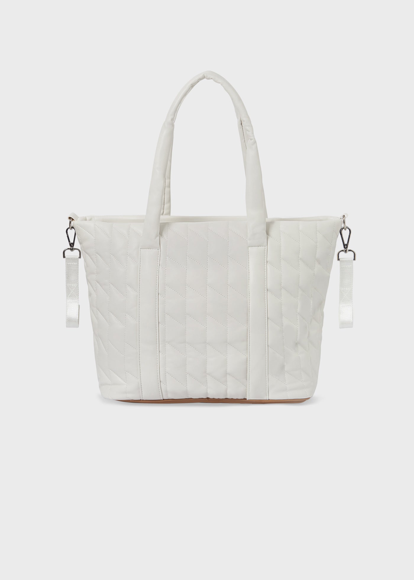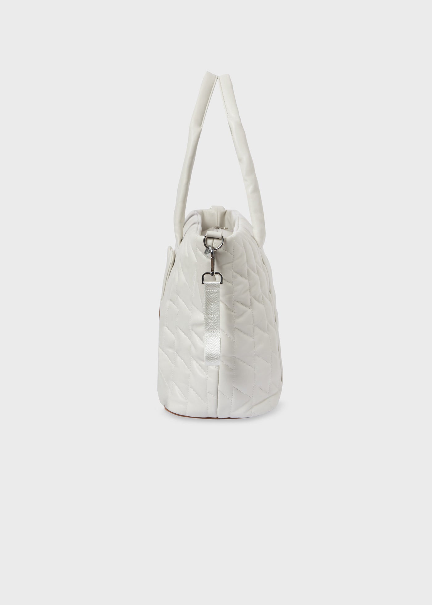 Spacious maternity bag used to help you on a daily basis and store everything you need to look after your baby. It includes a long, detachable strap for use as a shoulder strap and is a very versatile bag. This item incorporates detachable hanging straps, which can be easily attached to your baby´s pram. This item comes with a nice bag to match the garment. Dimensions are 12.40 in High x 13.77 in Wide