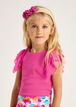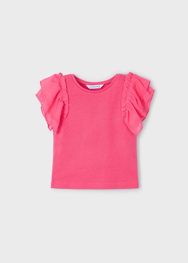 Short-sleeve t-shirt for girl with ruffle details. Lightweight, flowing chiffon fabric.