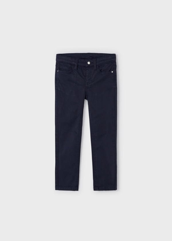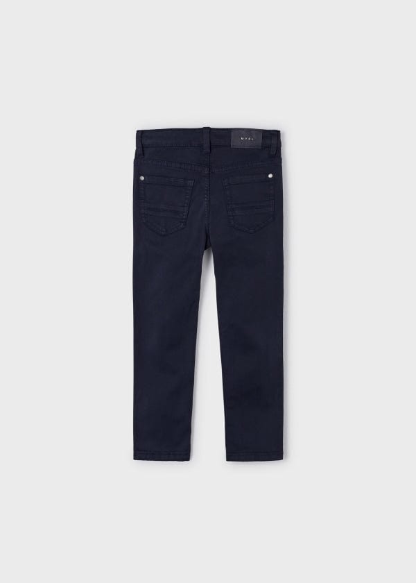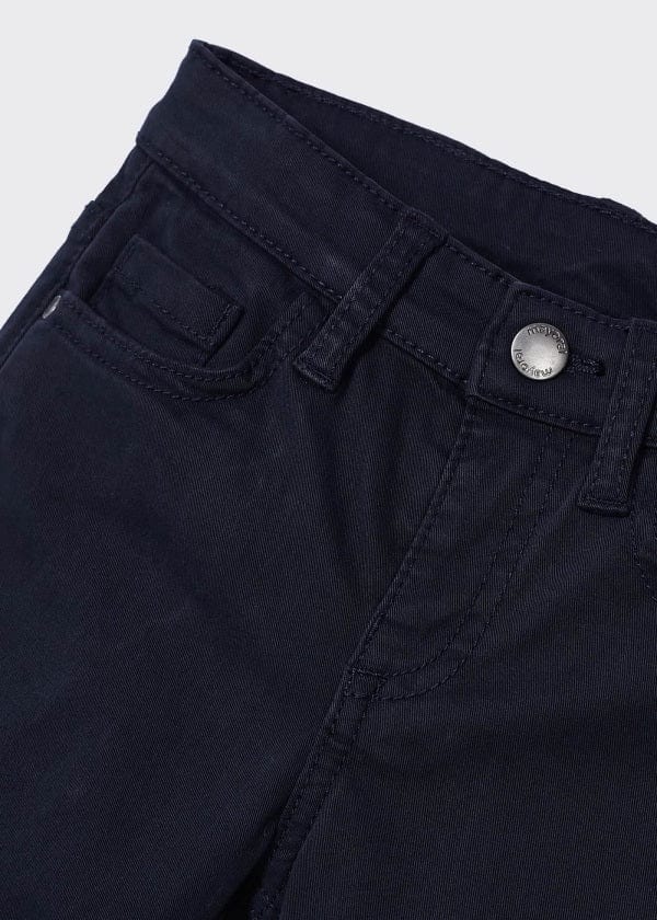 He'll be sleek and stylish in these Mayoral Slim Fit Pants! Featuring a comfortable and resilient twill fabric, plus an adjustable elastic waistband with buttons for a better fit, they hug his figure in all the right ways. And with sustainable accessories and functional front and back pockets, he can take his look (and his stuff) wherever his little heart desires. Ready to rock? Let's go!