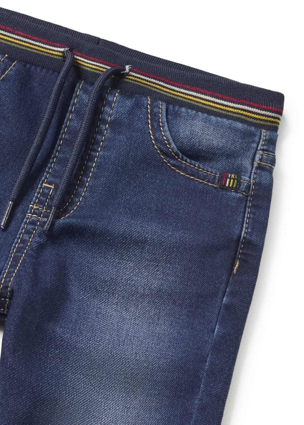 Mayoral Soft Denim Joggers for Baby are perfect for sporty looks, made from comfortable and soft stretch cotton denim. Featuring a baggy top that tapers to the ankle, an elasticated waistband with adjustable drawstring, and Better Cotton sourced via a chain of custody model. These joggers help agricultural communities with every purchase.