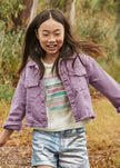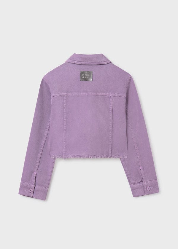 This long-sleeve girls' jacket is crafted from durable twill fabric for lasting comfort and style. Featuring a front button closure and functional front pockets, it’s as practical as it is fashionable. The fringe detail at the hem adds a trendy touch, making it a standout piece for casual outfits.