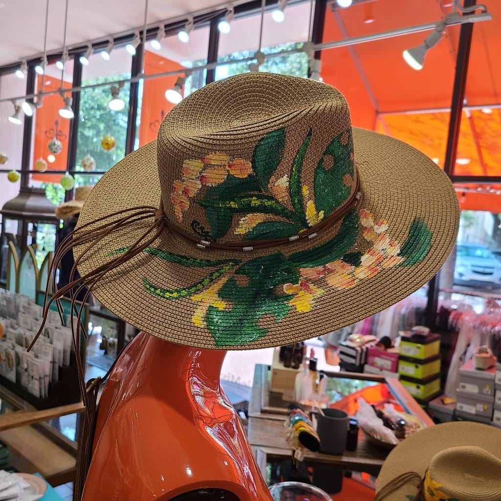 Gorgeous hand-painted sun hats by Michelle's Art Box. Hand-crafted by local artist Michelle Cowdrey from New Orleans, Louisiana! About the Artist Michelle’s Art Box was started in 2016. Through the mentorship from other established artists, Michelle created top selling, highly colorful designs based on local attractions, history, and culture. Along with continuing to sell to art shops, she has expanded to new avenues such as children's book illustrating and other commissioned work.