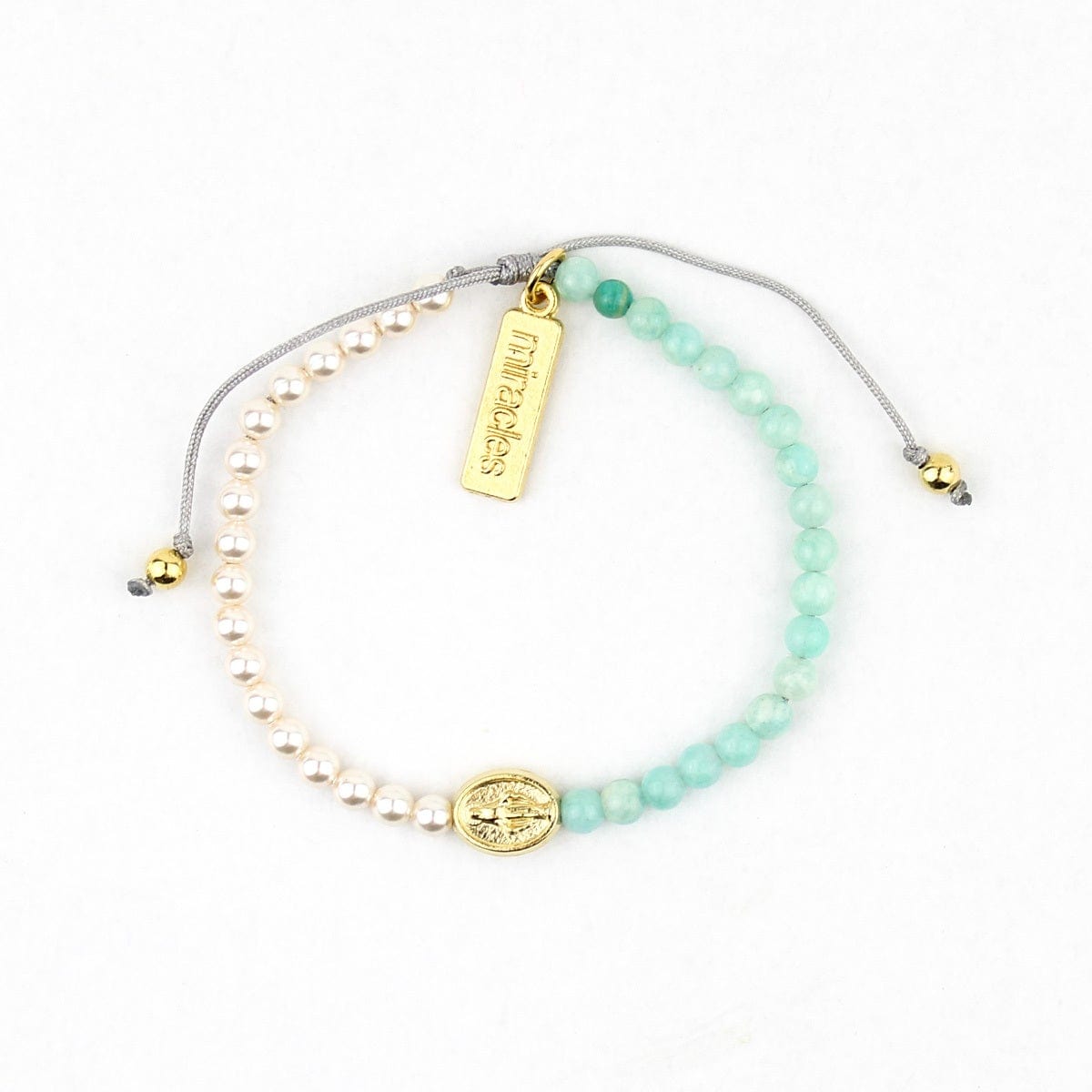 This My Saint My Hero bracelet is a powerful and beautiful reminder that Mother Mary is always there to provide guidance and show us the way. Decorated with gemstone beads and a Mary Medal, it's a beautifully crafted piece that anyone can enjoy. -Handwoven bracelet -Opens to 9.5" and closes to 6.25", with a sliding slipknot -Amazonite natural gemstone beads vary in size and color -Heirloom quality crystal -Premium heirloom-quality crystals are lead-free, sustainably manufactured, and environmentally friendly -Silver or Gold tone- Mary Medal and "miracles" charm tag -Handwoven in Mexicali -Medals hand-cast in a sacred site in Italy -Comes in a box with an inspirational card