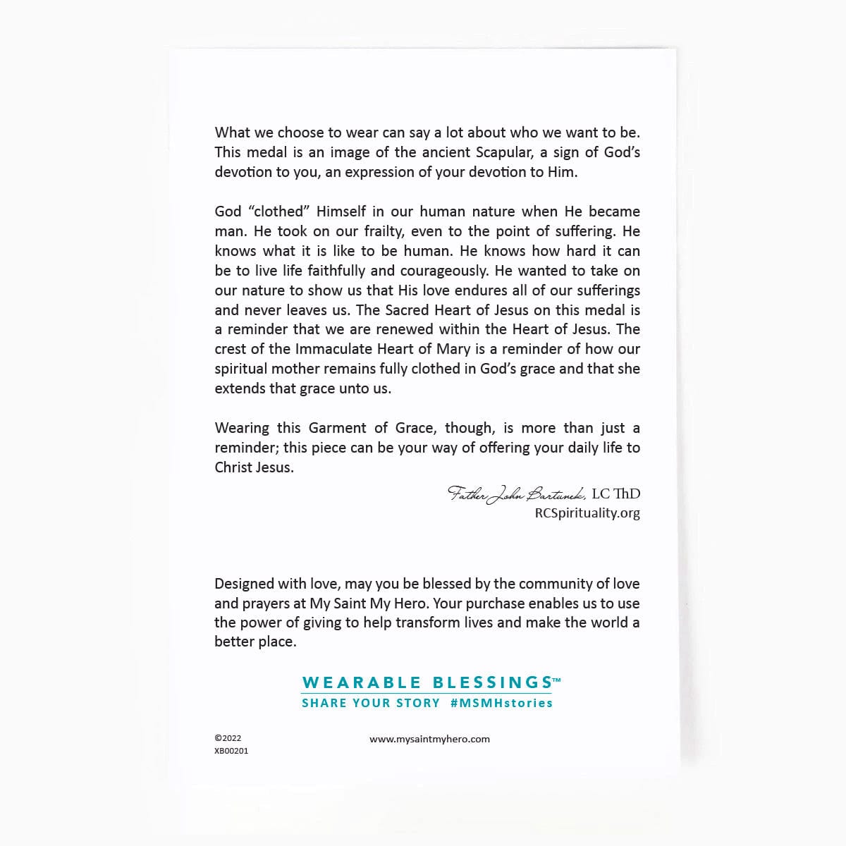 Wearing this Garment of Grace, though, is more than just a reminder; this piece can be your way of offering your daily life to Christ Jesus.