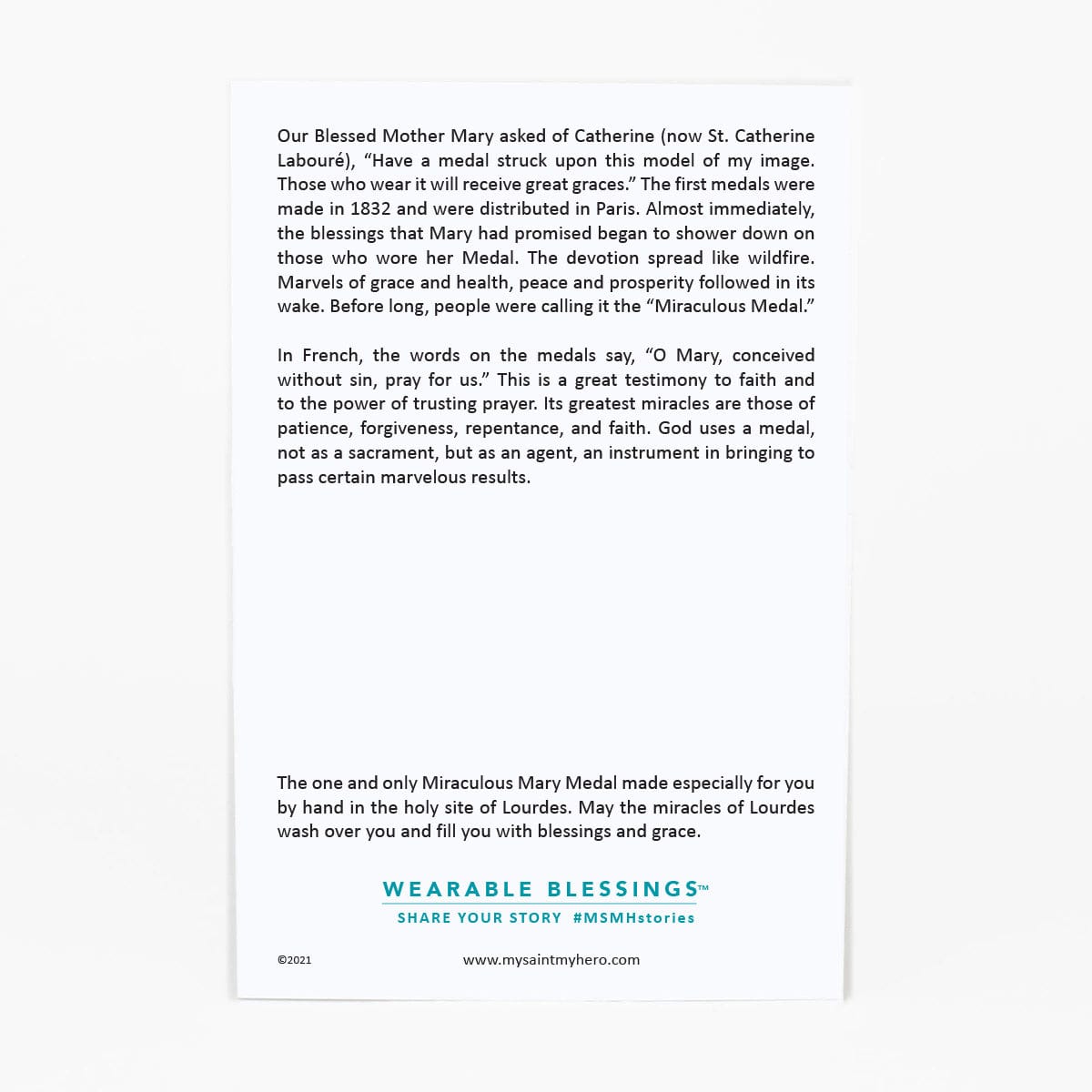 Each medal is handmade for you in the Holy Site of Lourdes. This medal is made by the official maker of the Miraculous Mary Medal for the Chapel of Our Lady of the Miraculous Medal in Paris, which is the exact location of the very first Miraculous Mary Medal ever made. In a revelation to St. Catherine Labouré, Our Blessed Mother said that anyone who wore this medal would receive many miracles.