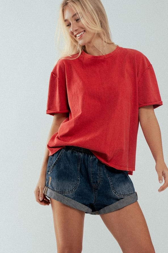 This Urban Daizy oversized red crewneck tee features a relaxed fit with short sleeves and dropped shoulders for a casual, modern look. Made from 100% cotton, it offers comfort and breathability, perfect for layering or wearing on its own for everyday style.