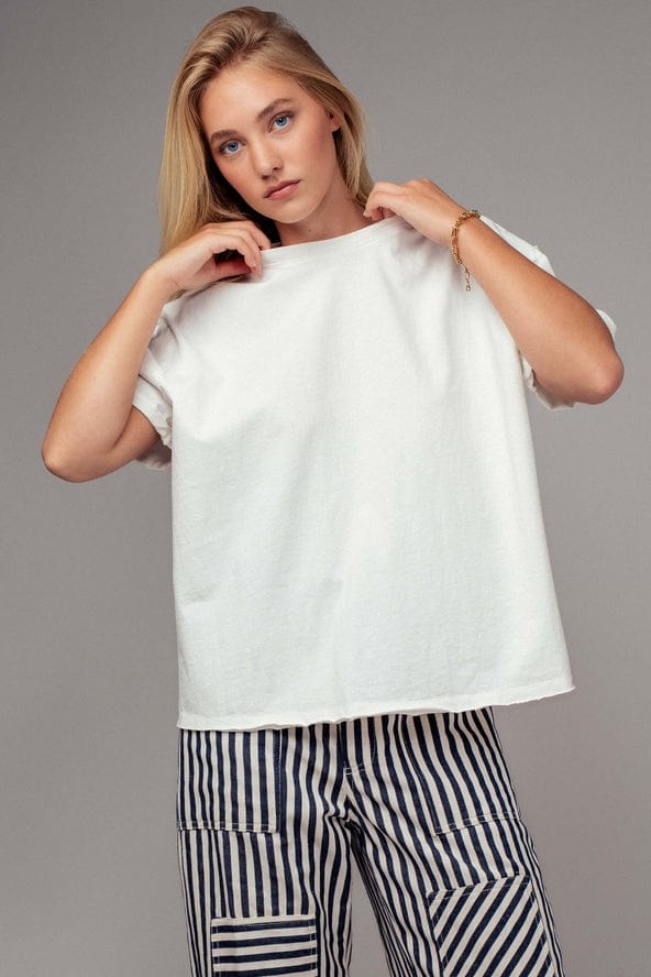 This Urban Daizy oversized white crewneck tee offers a relaxed fit with dropped shoulders. Made from 100% cotton, it ensures comfort and breathability for everyday wear.