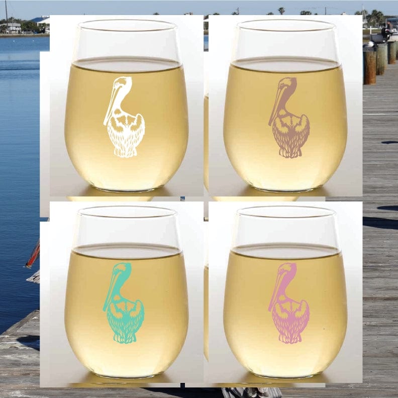 Enjoy your favorite wine with the Wine-Oh! Pelicans Unbreakable Stemless Wine Glasses. Made from clear, BPA-free Tritan plastic, these 16 oz tumblers are lightweight, shatterproof, dishwasher safe, and reusable. The 4-pack features pelicans designs and comes in colorful mesh bags with a wine cork tie. Made in the USA.