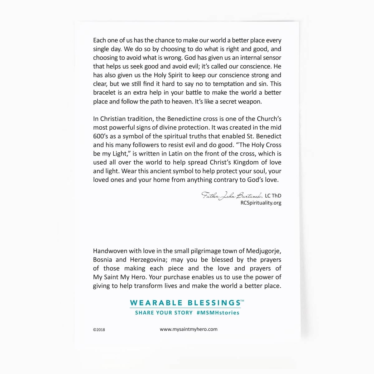 • Benedictine Blessing Bracelets come on an inspirational card with the story of the Benedictine Medal the most powerful medal of protection