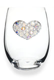 Elegant multi-stone heart stemless wine glass handcrafted in the USA. Perfect gift for weddings, anniversaries, birthdays & special occasions. Unique jeweled design arrives in decorative gift box. Celebrate in style.