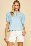 Elevate your style with the Pinch Short Sleeve V-Neck Top. The stylish V-neck and delicate puff sleeves add a touch of glam, while the ruffle at the neckline adds a playful touch. Perfect for any occasion, this top will make you stand out in the crowd.