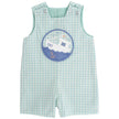 Get ready for double the seaside fun with this adorable Bailey Boys reversible John John featuring a playful shrimp boat applique! This versatile outfit offers two charming looks in one: one side showcases a beautifully crafted shrimp boat applique for a touch of seaside charm, while the other side reveals a fun sand dollar.