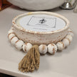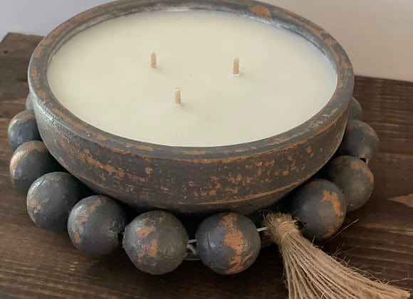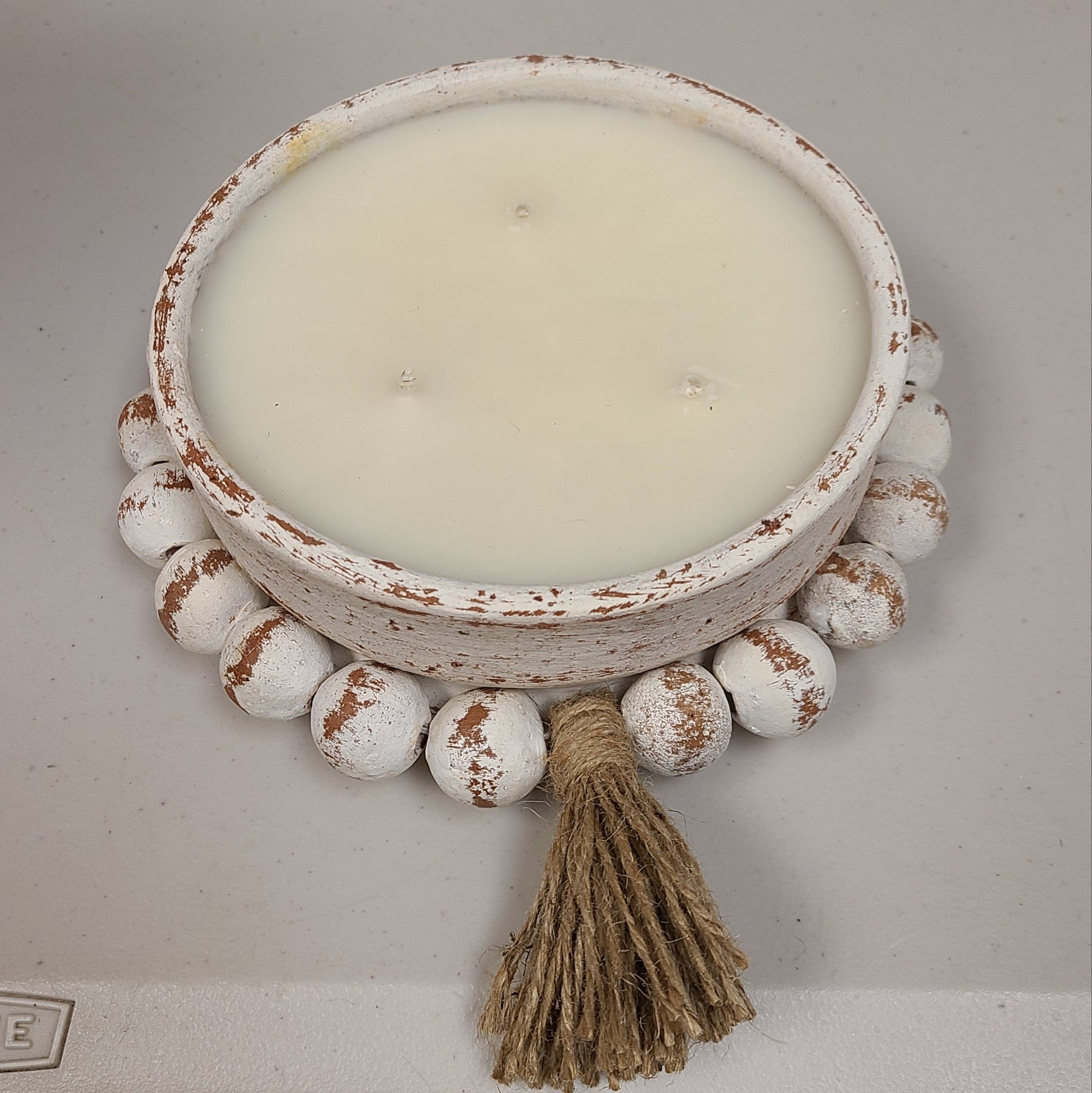 Pottery bowl wrapped in farmhouse beads and tassel.