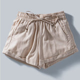 These comfortable shorts crafted from a lightweight viscose-linen blend feature a relaxed fit and adjustable drawstring. The versatile design and soft fabric make them perfect for casual everyday wear. Features: • Junior Sizing - Runs Small • 88% Viscose, 12% Linen •  • Soft, breathable fabric • Elastic waistband with adjustable drawstring • Relaxed fit silhouette. Junior sizing.