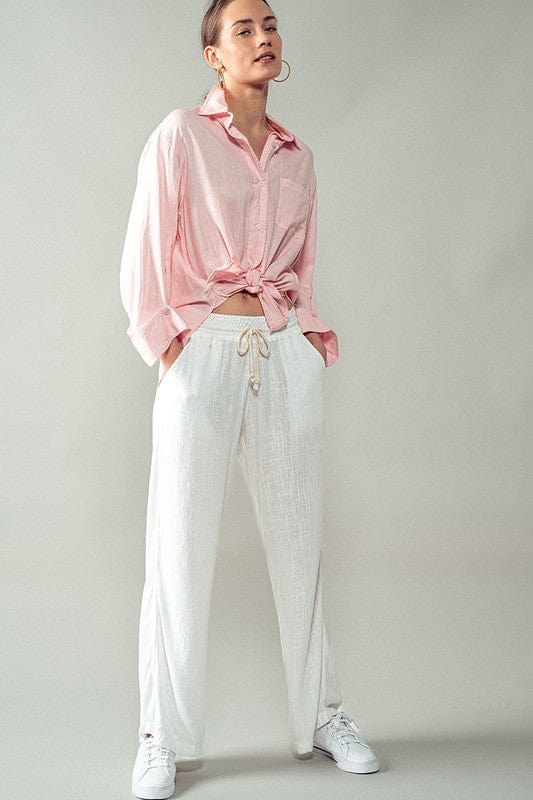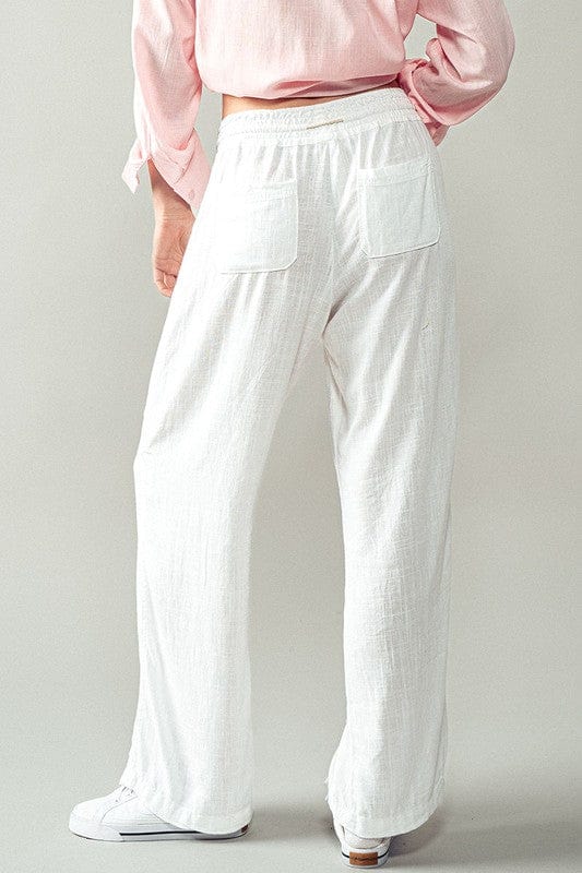 Lightweight Linen Pants with Durable Drawstring Waistband and Back Pockets.
