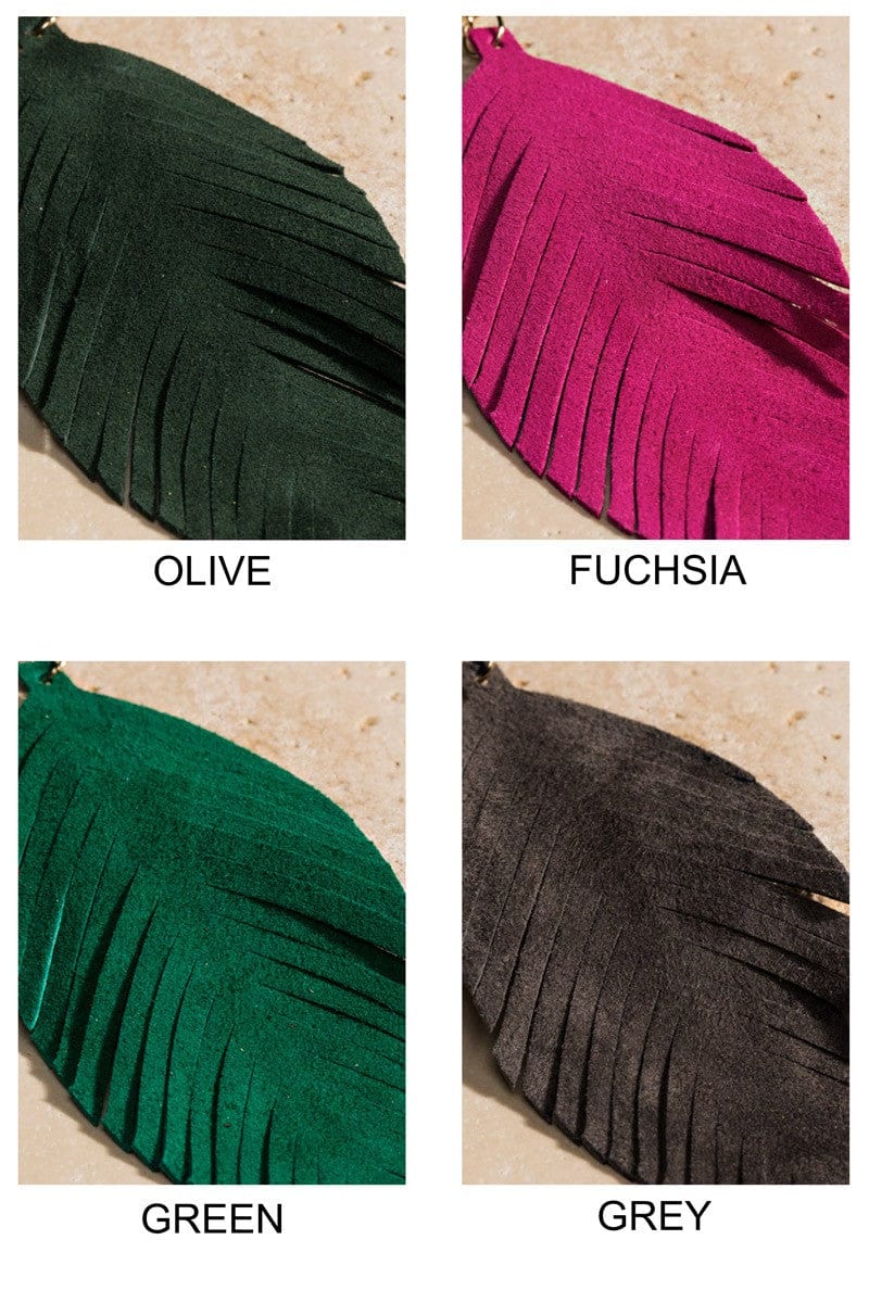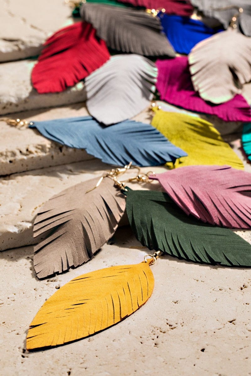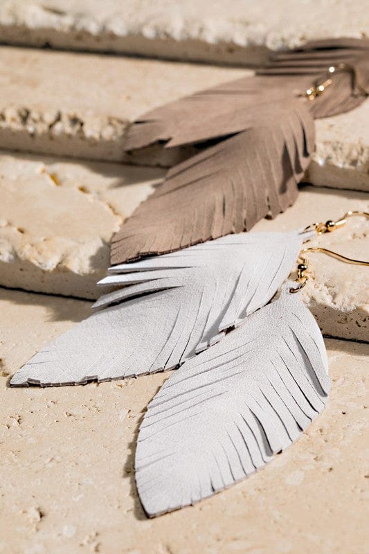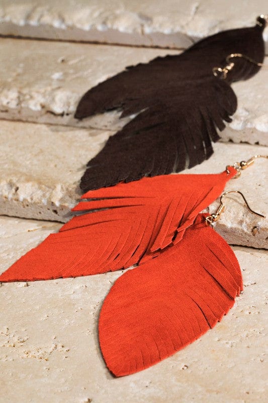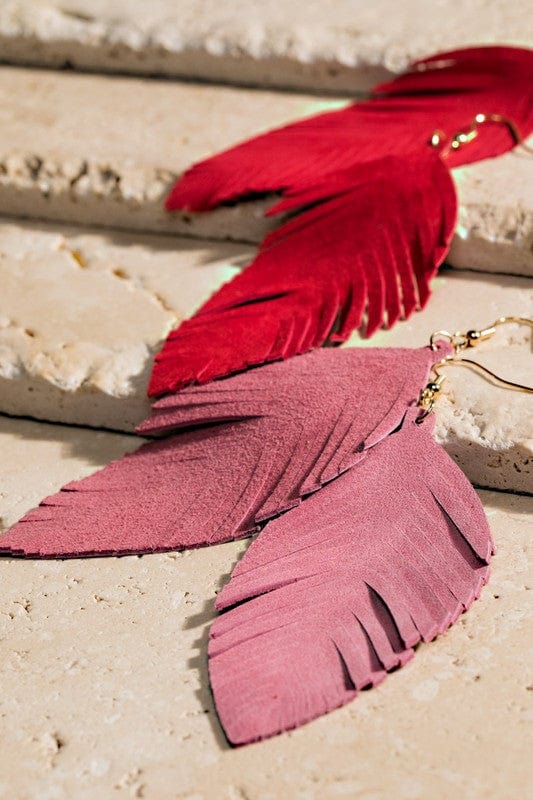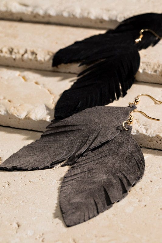 Urbanista's Leather Leaf Dangle Fishhook Earrings are inspired by nature and are crafted with smooth, genuine leather that is designed to last. These stylish earrings have a hook closure and are lightweight and comfortable to wear. An ideal accessory for any outfit.