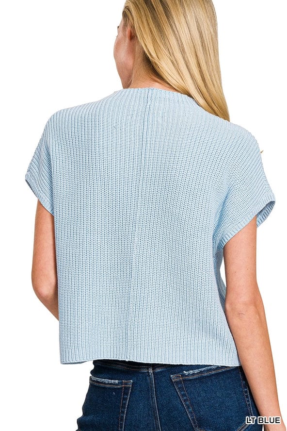 Mock Neck Short Sleeve Cropped Sweater - Best Quality Sweater - Low Gauge Heavyweight - Mock Neck - Dropped Shoulder Short Sleeve Total Body Length: 18.5", Chest: 39" Approx. - Measured From Small ** Color May Vary Slightly Due To Monitor Resolution Fabric 100% Cotton.
