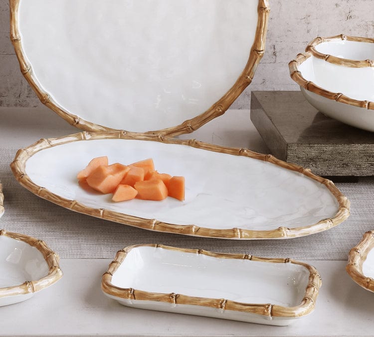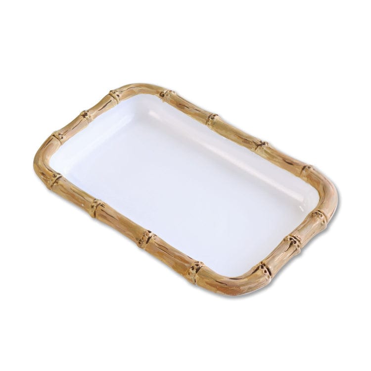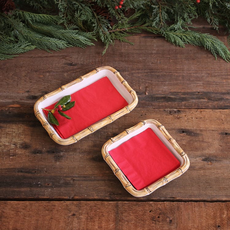 A flattering and classy look for guest towels. The VIDA Bamboo Beverage Napkin Holder (White and Natural), an essential serving piece from Beatriz Ball's VIDA Collection of luxury melamine, is the result of a collaboration between the award-wining tabletop company and noted illustrator, August Wren. With a bamboo inspired rim and a brilliant white surface, the small rectangular tray looks great anywhere. Perfect for a variety of serving needs, the VIDA Bamboo Guest Towel Holder (White and Natural) has the luster, heft and look of a ceramic piece. Holds standard guest towels. Made of luxury melamine for everyday enjoyment, this piece is ideally suited for indoor and outdoor use. Dishwasher safe (top rack), heavy weight, food safe, BPA and PABA free.